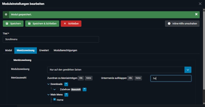 Gehen Sie also im jeweiligen Modul auf Menüzuweisung und wählen Sie "Nur auf den gewähltenSeiten" aus.