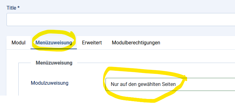 Somit wird das Modul auch nur auf der markierten Seite angezeigt.