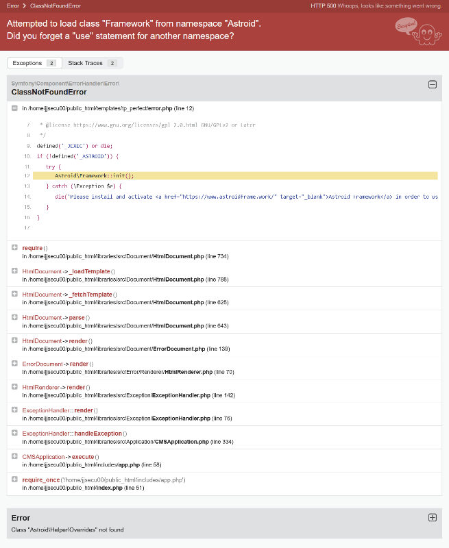 Got the following when trying to update. Removing provider.php restored the backend but still getting 500 on the frontend. PHP Warning: /libraries/astroid/framework/library/vendor/autoload.php): Failed to open stream: No such file or directory in /home/jjsecu00/public_html/plugins/system/astroid/services/provider.php on line 16